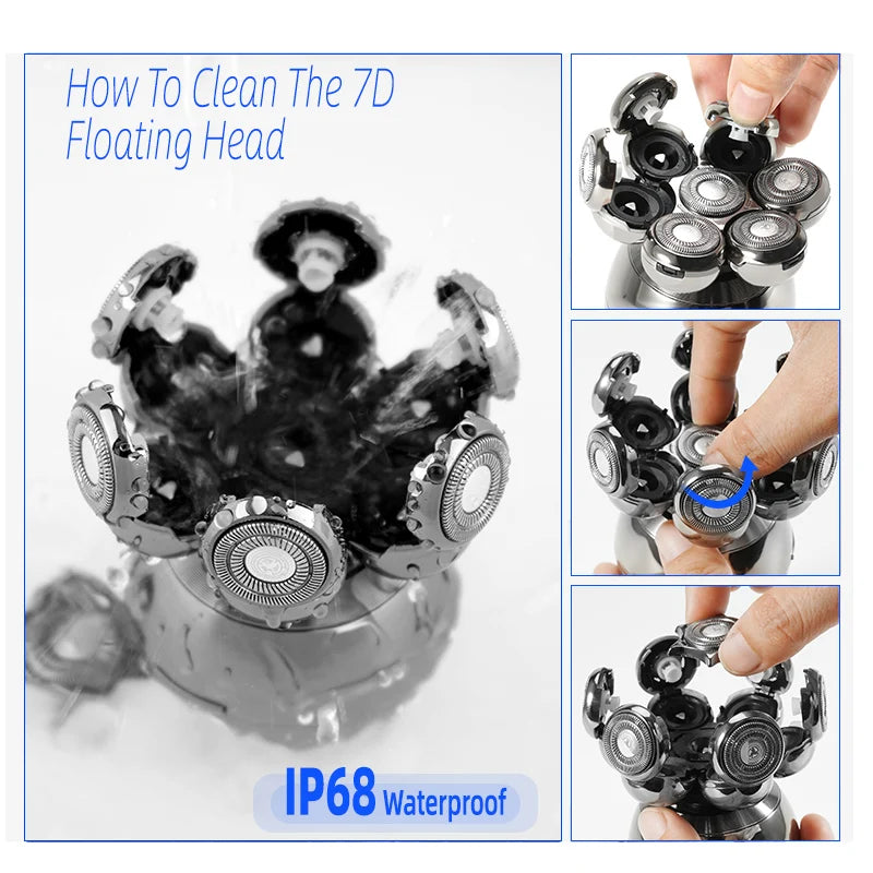 The Men’s head shaver with 7 rotary heads offers a smooth, fast, and comfortable shave for those who prefer a clean bald look. With seven independently floating blades, it adapts to the contours of your scalp, ensuring efficient coverage. The ergonomic design and cordless operation make it easy to use, whether at home or on the go. Its waterproof build allows both wet and dry shaving, and it’s easy to clean under running water. This all-in-one grooming solution is perfect for modern men looking for convenience and performance in a single device.